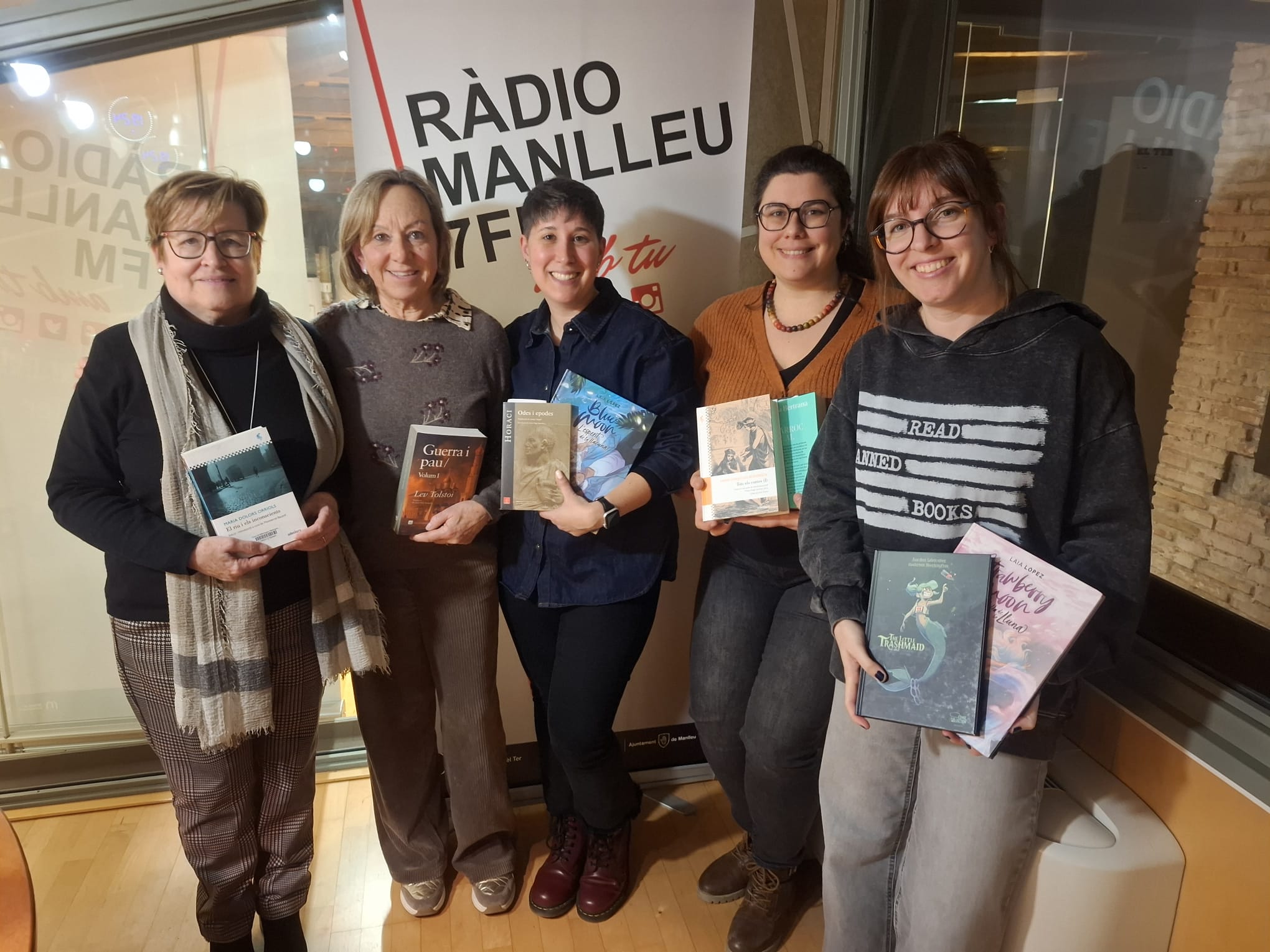 Com a convidades, aquest mes hem tingut a l’estudi de Ràdio Manlleu la Teresa Sanglas i la Maria Carme Codina, dues dones que no se saben estar quietes. Entre les moltes coses que fan, condueixen clubs de lectura de clàssics, una a la Biblioteca de Manlleu i l’altra, a la llibreria Vuk de Torelló.