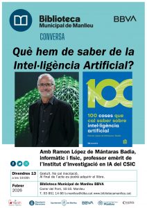 Divendres 13 de febrer, a les 19.00h, la Biblioteca Municipal de Manlleu acollirà una xerrada a càrrec de Ramon López de Mántaras Badia, informàtic, físic i professor emèrit de l’Institut d’Investigació en IA del CSIC.